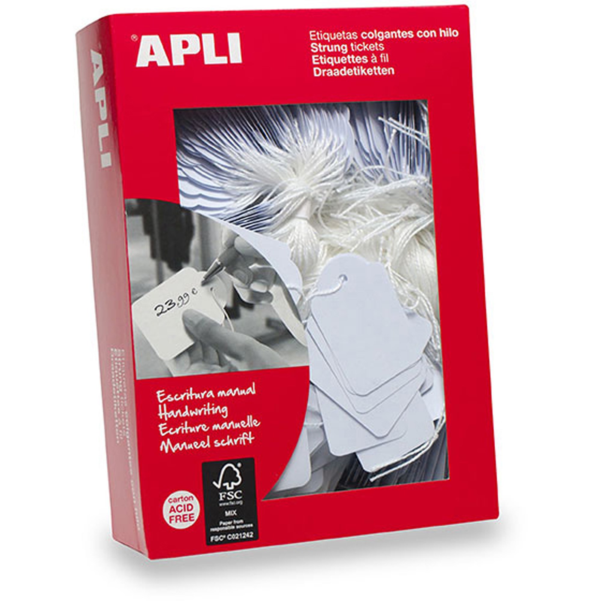 Apli 391 Handwriting Strung Tickets 28 x 43mm White Box Of 500