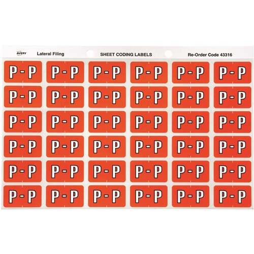 Avery Alphabet Coding Label P Side Tab 25x38mm Dark Orange Pack Of 180
