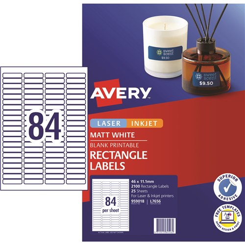Avery Blank Printable Labels L7656 46 x 11.11mm Rectangle Matte White 84UP 2100 Labels