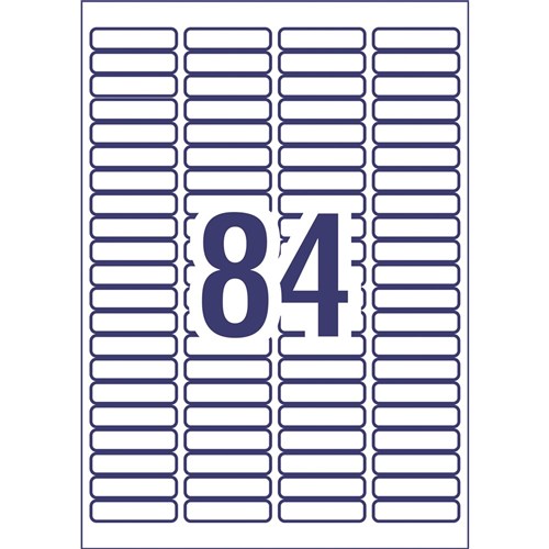 • Size: 46 x 11.11mm 2100 labels, 25 sheets. 84 labels per sheet (84UP).
