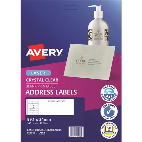 Avery Crystal Clear Laser Address Labels 99.1x34mm 16UP 160 Labels 10 Sheets