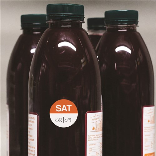 Visually identifies discard date of prepared food. Space to write the date on the label. Ideal for commercial refrigeration and food storage applications. Temperature -5 to +65C. Removable adhesive adheres to a variety of surfaces and removes easily.