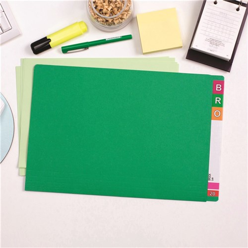 • Manufactured from strong weight board with a reinforced side tab on which you can label colour code and file title labels.
