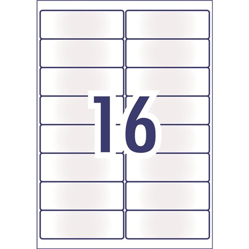 Ideal for parcels or boxes with a dark surface. Compatible with Inkjet printers and smudge-free for a professional finish. Labels provide a contemporary frosted clear finish. Made in Australia. Size: 99.1x34mm 400 labels, 25 sheets. 16 labels per sheet (16UP).