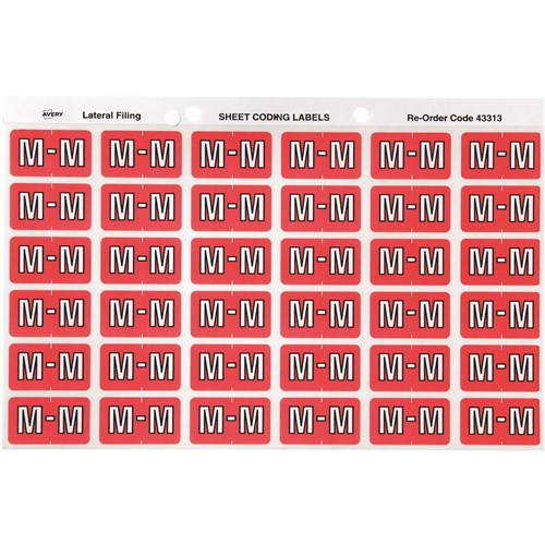 Avery Alphabet Coding Label M Side Tab 25x38mm Pink Pack Of 180