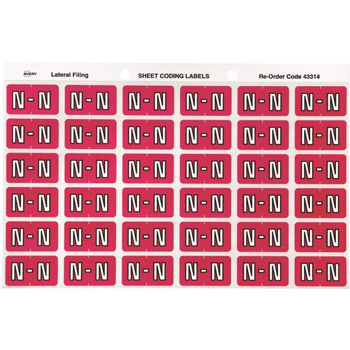 Avery Alphabet Coding Label N Side Tab 25x38mm Magenta Pack Of 180