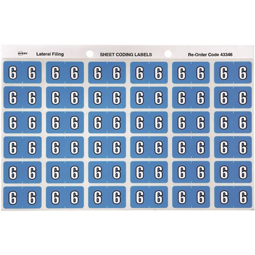 Avery Numeric Coding Label 6 Side Tab 25x38mm Blue Pack Of 180