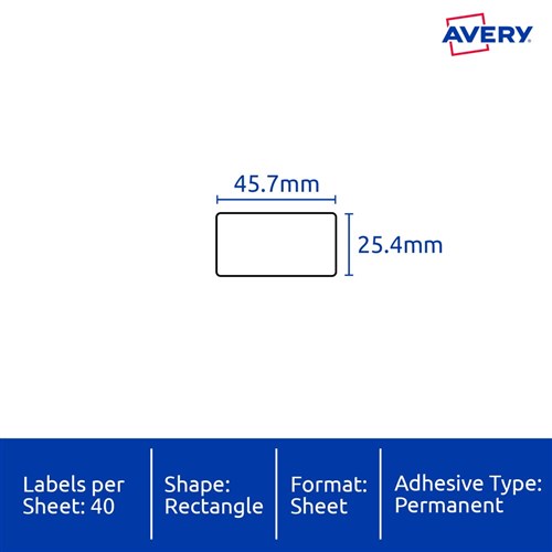 • Size: 45.7x25.4mm 400 labels, 10 sheets. 40 labels per sheet (40UP).