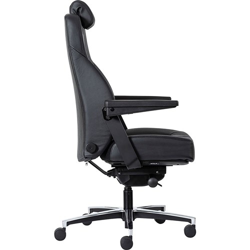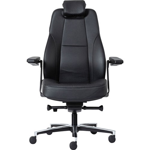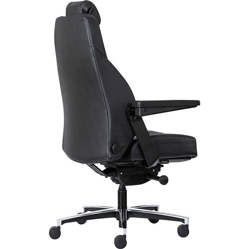 Chair Capacity: 200kg. Composition: Leather Seat and Back, aluminium polished design base with matt black underside. Overall dimensions: 745W x 690D x 1210Hmm. Fully adjustable: Height adjustable, height and depth adjustable headrest, depth adjustable lumbar support, retractable folding armrests. Heavy Duty: Two stage gas lift, 60mm castors. Seat Width: 530mm. Seat Depth: 480mm. Back Height: 660mm. 10 Year Manufacturer's Warranty (excluding upholstery 8+ hours). 2 Year Manufacturer's Warranty (excluding upholstery 16+ hours). Delivery, installation and assembly charges may apply to furniture. Please enquire to confirm.