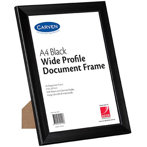 Protect and display your achievements, recognitions and special memories in a carven document frame. High quality, stylish frames suitable for certificates, documents, awards and photos. Horizontal and vertical hanging clip. Easel backing. Glass protecting overlay and MDF backing.