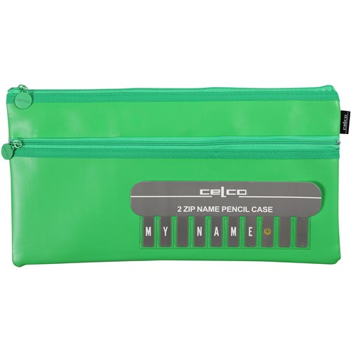 Celco Pencil Case Name Twin Zip Large 350 x 180mm Green