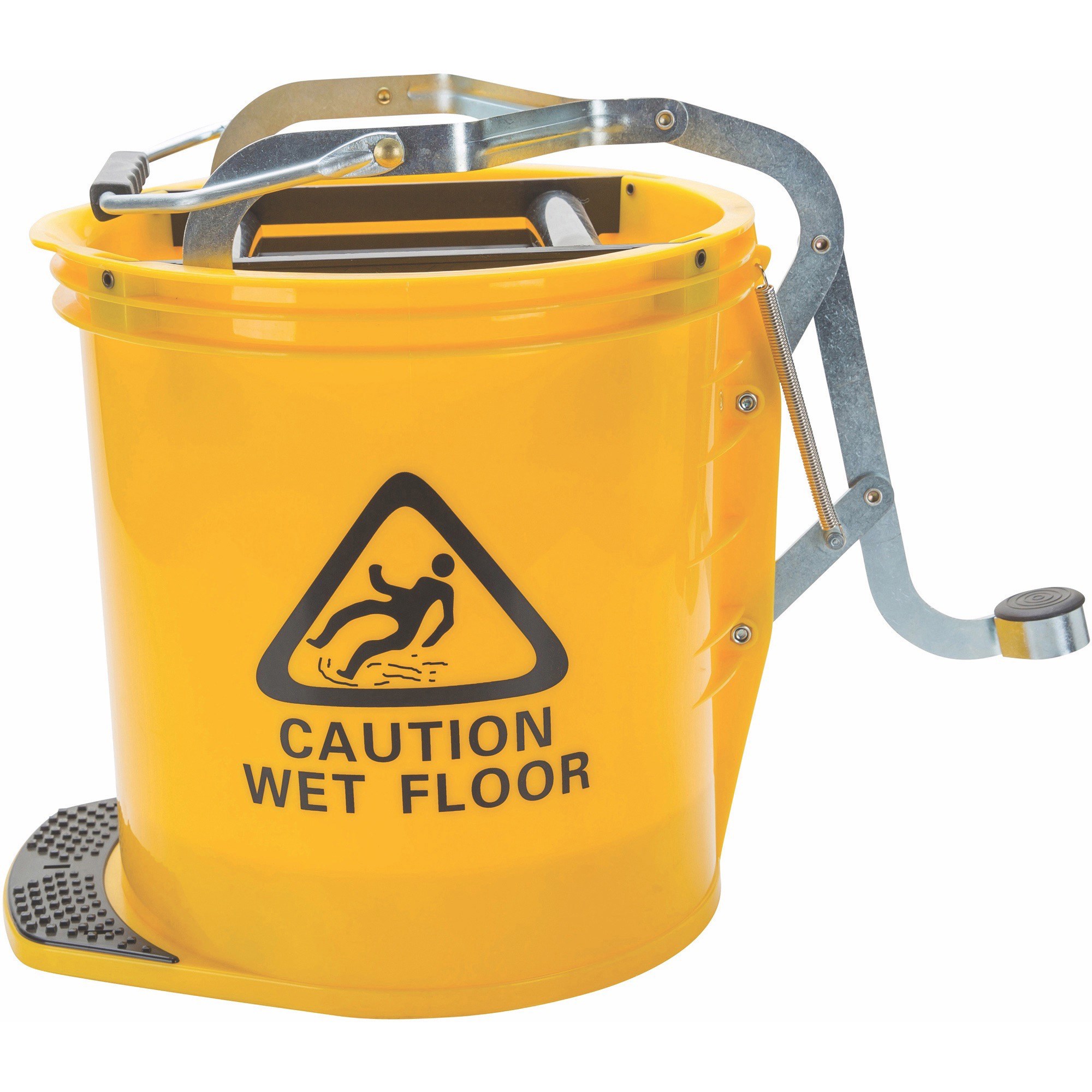 Cleanlink Heavy Duty Plastic Mop Bucket Metal Wringer 16 Litres Yellow