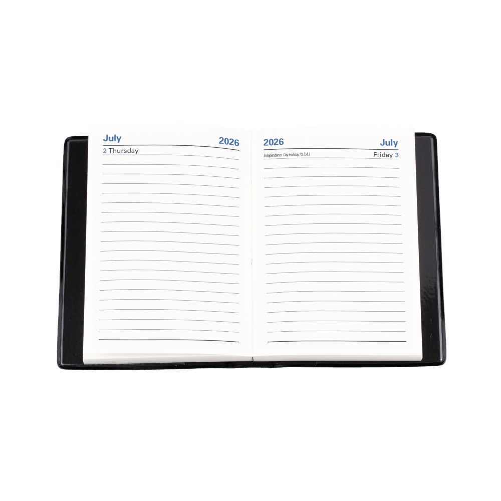 Bound in durable, welded PVC, the Belmont is available in black, burgundy and navy. 3 year calendars. Forward year planners. Calendar notes. Financial summary. Australian and New Zealand holidays. Size: 105 x 74mm. FSC Certified.