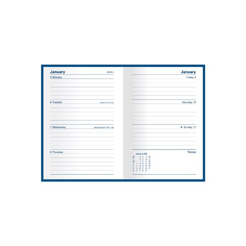 Hardwearing, linen-look cover. Extensive range of internal features, including notes, planners and essential information. Lay flat opening, ribbon marker, week to view layout. Australian and New Zealand holidays. 3 year calendars. Current and forward year planners. Monthly planners, addresses and notes. Tax information, staff leave and financial summary. International holidays and International dialling. Size: 148 x 105mm. FSC Certified.