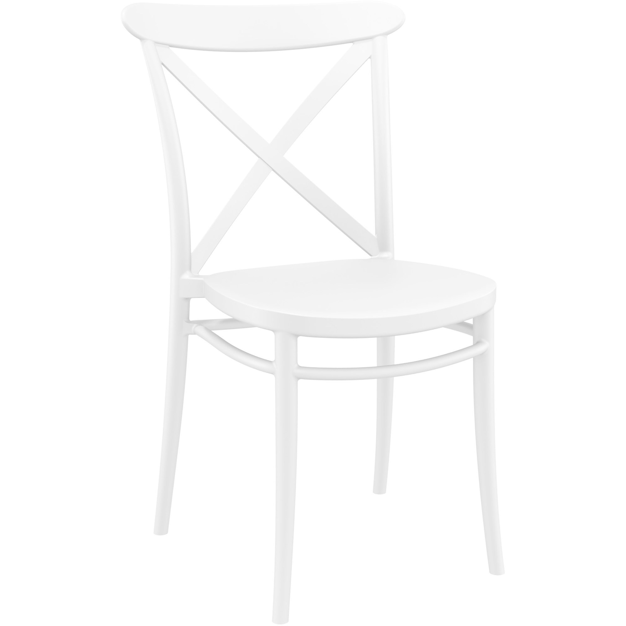 Cross Back Hospitality Dining Chair Indoor Outdoor Use Stackable Polypropylene White