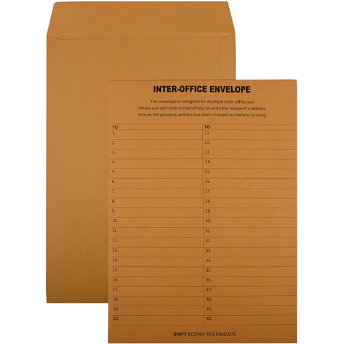 100gsm premium quality envelopes. Send internal documents around the office. Ungummed. Pre-printed Inter-Office details. Opening on the short side.