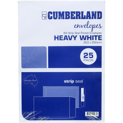 Cumberland Plain Envelope Pocket B4 250 x 353mm Strip Seal White Pack Of 25