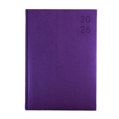 Soft touch padded cover. Ribbon marker. Appointment times 7:30am - 7:30pm, 1/2 hourly. 3 year calendars. Current and forward year planners. Financial summary. International holidays. International dialling. Size: 297 x 210mm. FSC Certified.