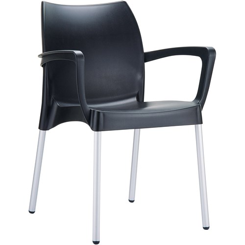 Dolce Hospitality Dining Chair With Arms Indoor Outdoor Use Stackable Polypropylene Black