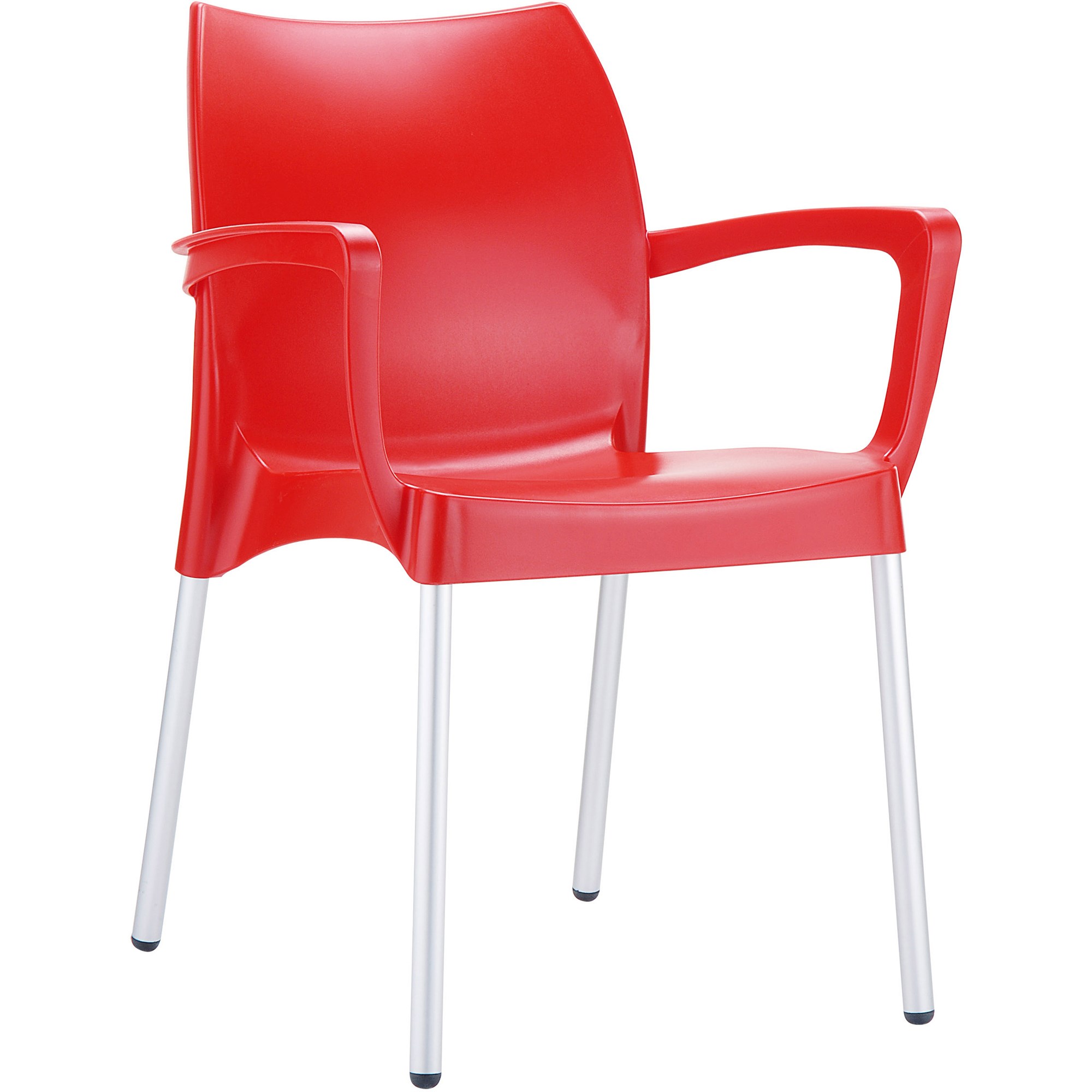 Dolce Hospitality Dining Chair With Arms Indoor Outdoor Use Stackable Polypropylene Red
