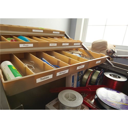 Scratch resistant industrial-strength vinyl labels created specifically for your LabelManager® and LabelWriter™ Duo label makers. Easy peel for trouble-free application. Scratch and tear resistant material helps ensure text stays legible. Thermal transfer printing technology Industrial strength adhesive helps to ensure labels stay stuck to a variety of surfaces. Indoor/outdoor water-resistant design withstands UV light, heat, humidity, household cleaners and freezing conditions. Labels are perfect for mugs, water bottles and food storage containers. Ideal for labeling kitchens, pantries, utility cupboards, laundry rooms, workshops or garages. Sticks securely to flat or curved surfaces. Thermal transfer printing creates durable labels with text that won External cassettes are made from 100% recycled materials.