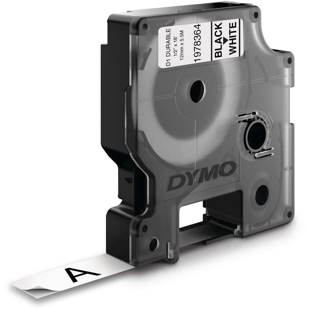 DYMO D1 Durable Industrial Tape Labels 12mm x 5.5m Black On White