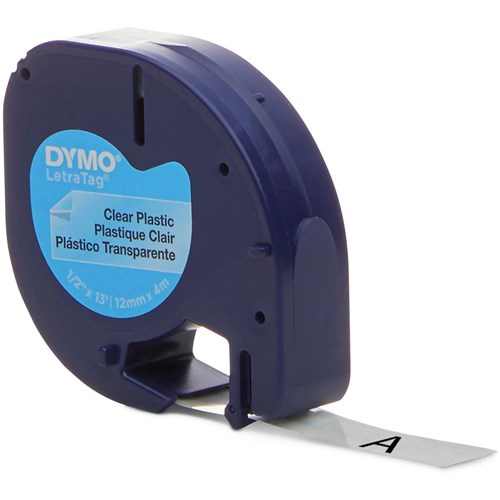 Dymo LetraTag Labelling Tape 12mm x 4m Black On Clear