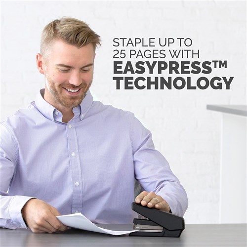 • Full-strip EasyPress™ stapler effortlessly staples up to 25 sheets.