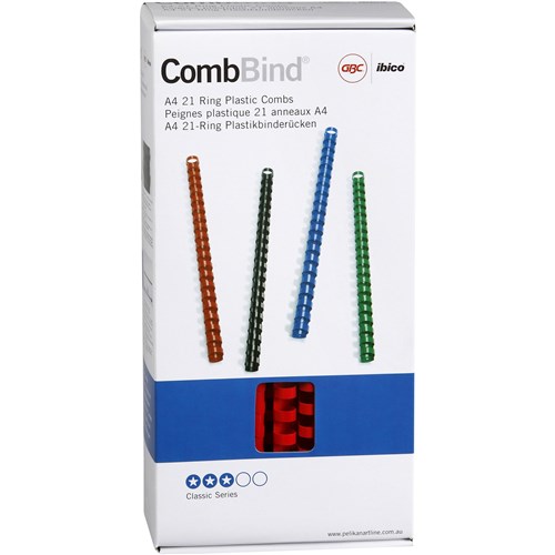High quality plastic combs for use with all standard binding machines. Available in an array of colours and sizes from 6mm to 51mm. Combs can be reopened to insert or remove pages at any time. Allows for finished documents to lie flat when turning pages. Plastic combs are cost effective and durable.