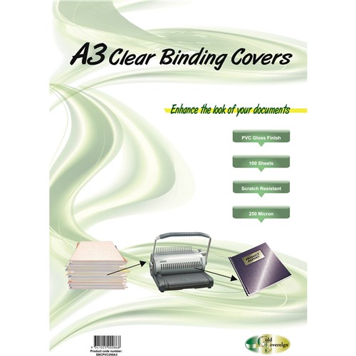 PVC clear binding cover. 250 micron. Give your bound document a professional finish.