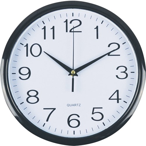 Italplast Wall Clock 30cm Round With Large Numbers Black Frame White Face