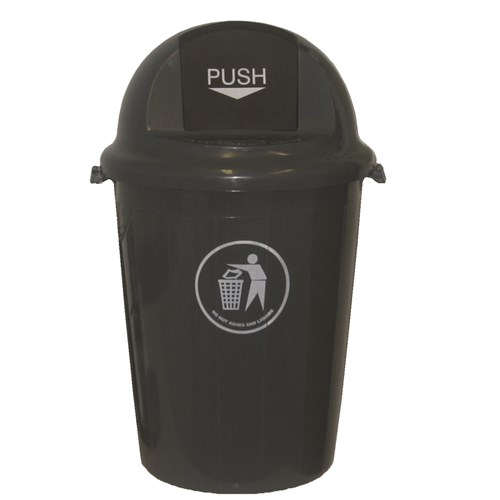 Heavy duty bin with weighted swing top lid. Modern and stylish design makes this bin suitable for the office, warehouse floor or anywhere in-between. Made from durable plastic material for added strength. Wide mouth to ensure easy disposal of waste. Complete with swing top lid to capture odours and added hygiene. Dimensions: 440 Diameter x 770mmH.