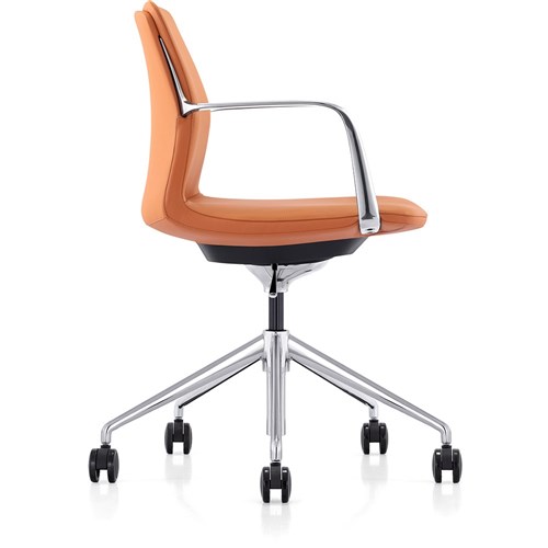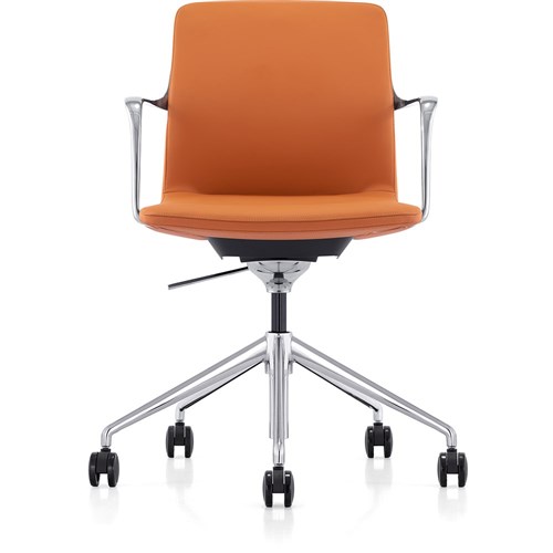 Weight Rating: 150kg. Modern design comfortable executive chair. Chair Dimension: Seat Width 490mm, Seat Depth 450mm, Back Height: 340mm, Overall Height 820 - 880mm. Indicative Seating Time: 8 hours. Simple mechanism only rotating. Premium Genuine Leather Upholstery in Orange. High density mould foam. 5 Years Manufacturer's Warranty. Delivery, installation and assembly charges may apply to furniture. Please enquire to confirm.