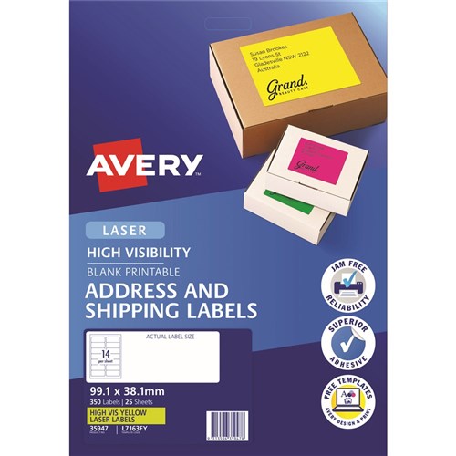Avery High Visibility Shipping Laser Labels Yellow L7163FY 99.1x38.1mm 14UP 350 Labels