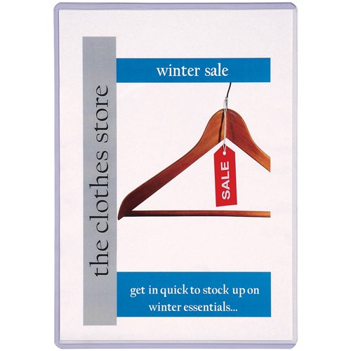 Crystal clear, rigid high quality PVC, sealed on 3 sides. Side opening. Durable and washable. Excellent protection for menus, certificates, price cards, presentation and display material. Use instead of lamination, contents easily inserted and removed.