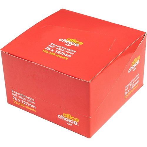 Office Choice Repositionable Sticky Notes 100 Sheets Yellow 76 x 127mm Pack of 12