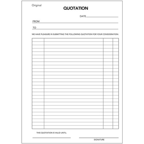 Provides a quick and effective way of managing any business transaction. A4. 297 x 210mm. Sequentially numbered for filing and accounting purposes. Ideal for providing customer quotations. FSC certified.