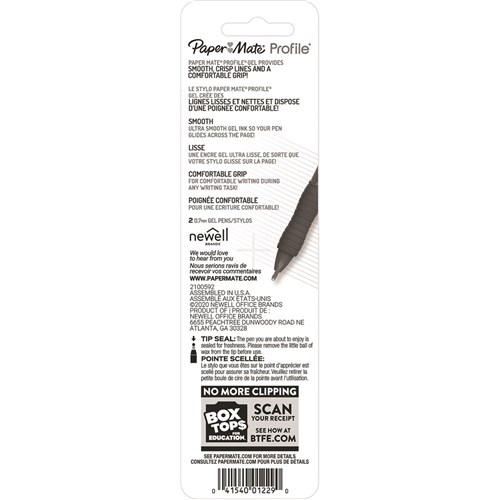 Papermate Profile Gel Pen Retractable 0.7mm Blue Pack of 2