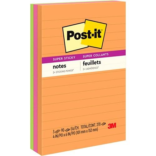 Post-It 660-SS-1PK Super Sticky Notes 101mmx152mm Energy Boost Pack of 3