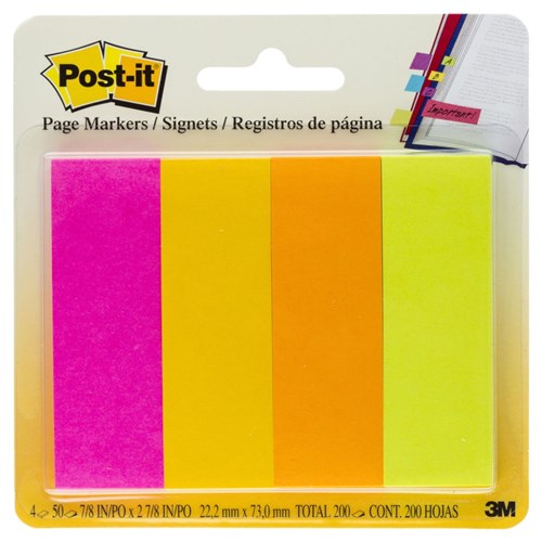 Post-It Page Markers 22x73mm Neon Assorted 50 Sheet Pad Pack Of 4