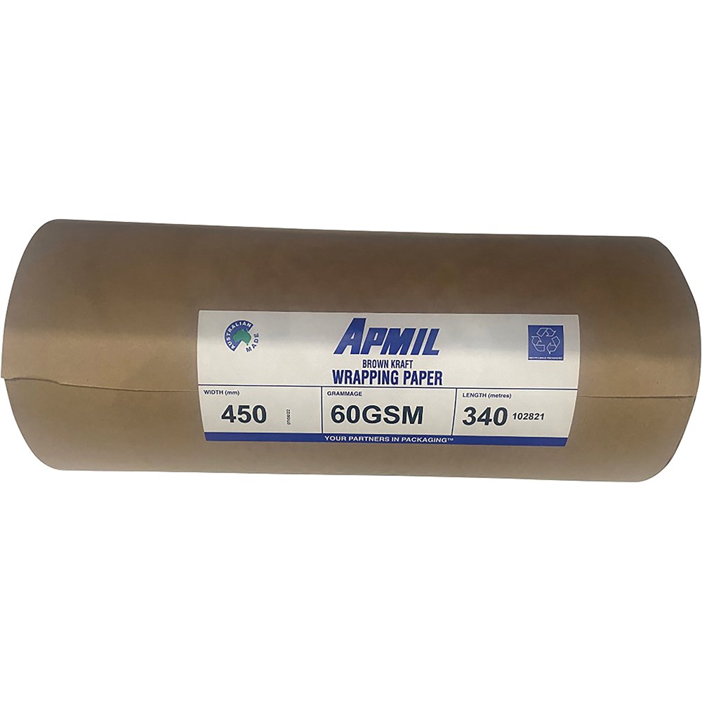 Brown kraft. 100% recyclable. Ideal for wrapping or packing. 25mm core.