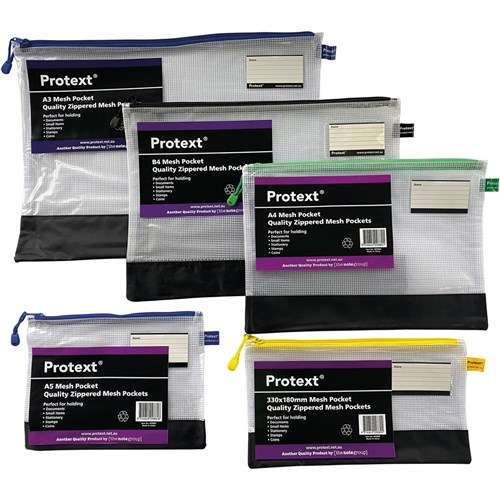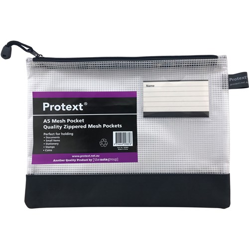 Protext long lasting PP pouch. Ideal for holding paper, stationery, money. Bonus card holder for name or notes. With nylon reinforced bottom.