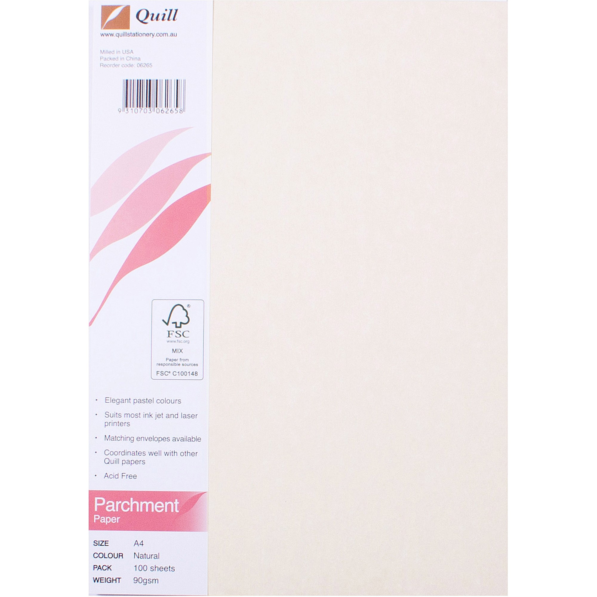Quill Parchment Paper A4 90gsm Natural Pack of 100