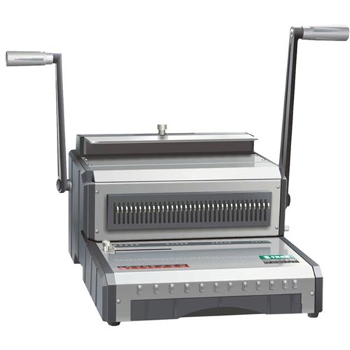 3:1 pitch wire. Punches up to 25 sheets. Binds up to 120 sheets. Accepts wires from 6 to 16mm. Disengagable punches. Separate handle to close wires. Adjustable margins. Large waste drawer. Dimensions: 430 x 425 x 265mm. 2 Year Manufacturer Warranty.