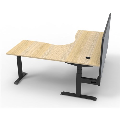 The entire Boost+ range has now been performance tested and is compliant to the AFRDI standards for general safety, strength, durability and stability in all sizes and configurations based on AS/NZS 4442:201. Unit Dimension:1500mm W x 1500mm W x 750mm D x 620mm - 1270mm H. Includes pinnable privacy screen in grey fabric with matching black powder coated frame. 900mm H x 30mm T. Smooth and quiet adjustment at 38mm per second. Digital control panel with 3 pre-set positions, LED display panel, keypad safety lock and reminder alarm setting. Natural Oak coloured worksurface with 750mm depth top. 50mm D scallop cut out to rear. 140kg weight loading capacity. Dual Motor 3 stage motorised legs. Corner Workstation with Screen. 10 Year Manufacturer's Warranty. Delivery, installation and assembly charges may apply to furniture. Please enquire to confirm.