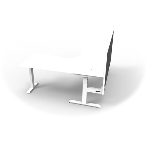 The entire Boost+ range has now been performance tested and is compliant to the AFRDI standards for general safety, strength, durability and stability in all sizes and configurations based on AS/NZS 4442:201. Unit Dimension:1800mm W x 1800mm W x 750mm D x 620mm - 1270mm H. Includes pinnable privacy screen in black fabric with matching white powder coated frame. 900mm H x 30mm T. Smooth and quiet adjustment at 38mm per second. Min Digital control panel with 3 pre-set positions, LED display panel, keypad safety lock and reminder alarm setting. Natural White coloured worksurface with 750mm depth top. 50mm D scallop cut out to rear. Dual Motor 3 stage motorised legs. Corner Workstation with screen. 140kg weight loading capacity. 10 Year Manufacturer's Warranty. Delivery, installation and assembly charges may apply to furniture. Please enquire to confirm.