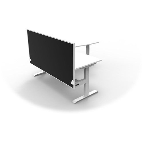 • Includes pinnable privacy screen in black fabric with matching white powder coated frame. 900mm H x 30mm T.