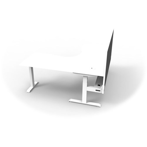 The entire Boost+ range has now been performance tested and is compliant to the AFRDI standards for general safety, strength, durability and stability in all sizes and configurations based on AS/NZS 4442:201. Unit Dimension:1800mm W x 1800mm W x 750mm D x 620mm - 1270mm H. Corner Workstation with Cable Tray and Screen. Includes pinnable privacy screen in black fabric with matching white powder coated frame. 900mm H x 30mm T. Keypad safety lock and reminder alarm setting. Digital control panel with 3 pre-set positions and LED display panel. Anti- collision and anti-tilt technology. Dual motor 3 stage motorised legs. 140kg weight loading capacity. 10 Year Manufacturer's Warranty. Delivery, installation and assembly charges may apply to furniture. Please enquire to confirm.