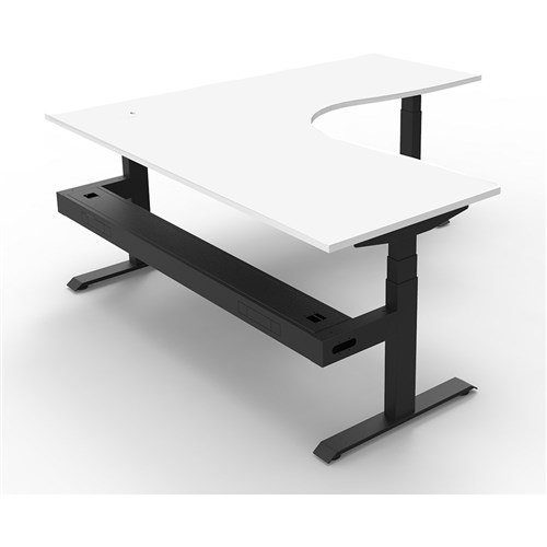The entire Boost+ range has now been performance tested and is compliant to the AFRDI standards for general safety, strength, durability and stability in all sizes and configurations based on AS/NZS 4442:201. Natural White top Black frame. Includes cable tray. Unit Dimensions: 1800W x 1800W x 750D x 620mm - 1270mmH. E0 rated top, powder coated base. Keypad safety lock and reminder alarm setting. Digital control panel with 3 pre-set positions and LED display panel. Anti- collision and anti-tilt technology. Dual motor 3 stage motorised legs. 140kg weight loading capacity. 10 Year Manufacturer's Warranty. Delivery, installation and assembly charges may apply to furniture. Please enquire to confirm.