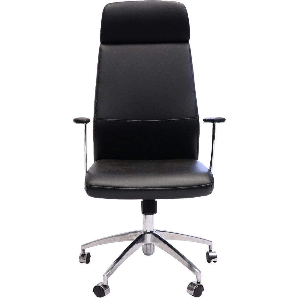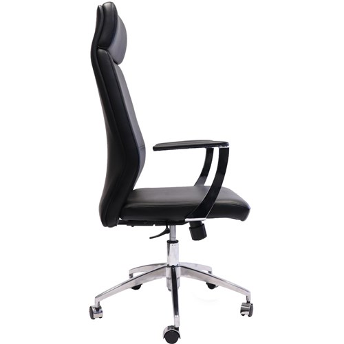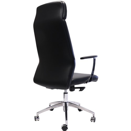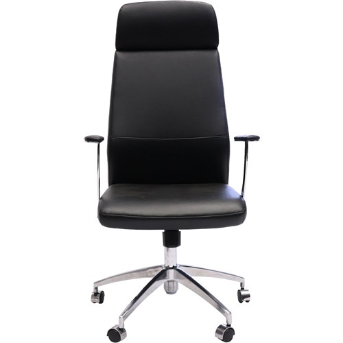 Rapidline slimline executive high back chair with a 3 position lock mechanism to adjust seating angle, upholstered arm pads and polished aluminium arms and base. Easy to adjust seat and back tilt with 3 position lock mechanism with anti-shock. Upholstered In Soft Commercial Grade Black PU. Soft PU Armrest Pads With Stylish Radial Polished Aluminium Supports 120 Kg weight rating. 2 levers. 10 Year Manufacturer's Warranty. Delivery, installation and assembly charges may apply to furniture. Please enquire to confirm.